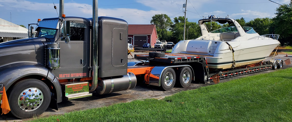 Thanks for visiting the home of Beattie’s Marine Transport. We haul boats of just about any size to locations throughout North America. Whether the owners of luxury yachts, motor boats, or sailboats, our customers have been relying on Beattie’s for years to ensure their boat’s safe and timely transport.